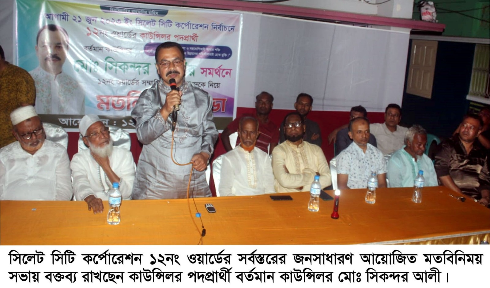 সভায় আসন্ন সিলেট সিটি কর্পোরেশন নির্বাচনে এলাকার সৎ, যোগ্য ও নিবেদিত প্রাণ জনপ্রিয় কাউন্সিলর মোঃ সিকন্দর আলীর উন্নয়ন কর্মকান্ড ও ওয়ার্ডবাসীর সামগ্রিক উন্নয়নের ধারাবাহিকতা রক্ষার ওপর আলোচনা অনুষ্ঠিত হয়।