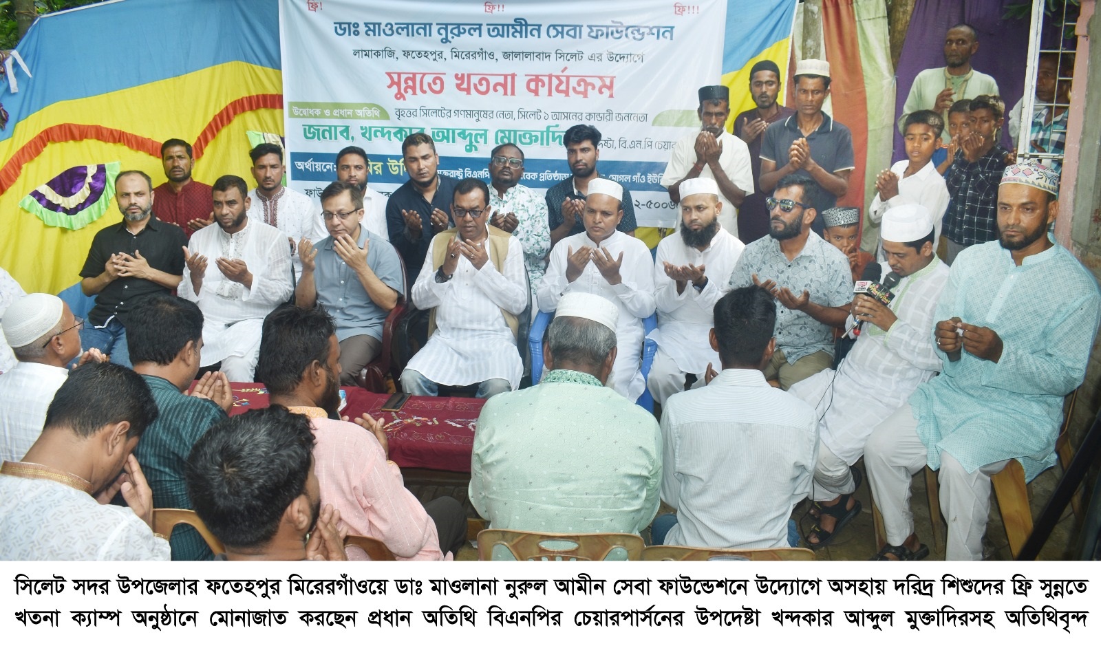 তিনি গত শনিবার (১২ এপ্রিল) দুপুরে সিলেট সদর উপজেলার মোগলগাঁও ইউনিয়নের ফতেহপুর মিরেরগাঁওয়ে’ জিএম কিবরিয়ার বাড়িতে ডাঃ মাওলানা নুরুল আমীন সেবা ফাউন্ডেশনে উদ্যোগে ও যুক্তরাষ্ট্র বিএনপি নেতা ও মোগলগাঁও ইউনিয়ন ছাত্রদলের সাবেক প্রতিষ্ঠাতা আহ্ববায়ক আমির উদ্দিনের অর্থায়নে অসহায় দরিদ্র শিশুদের ফ্রি সুন্নতে খতনা ক্যাম্পে উদ্বোধক ও প্রধান অতিথির বক্তব্যে এসব কথা বলেন।