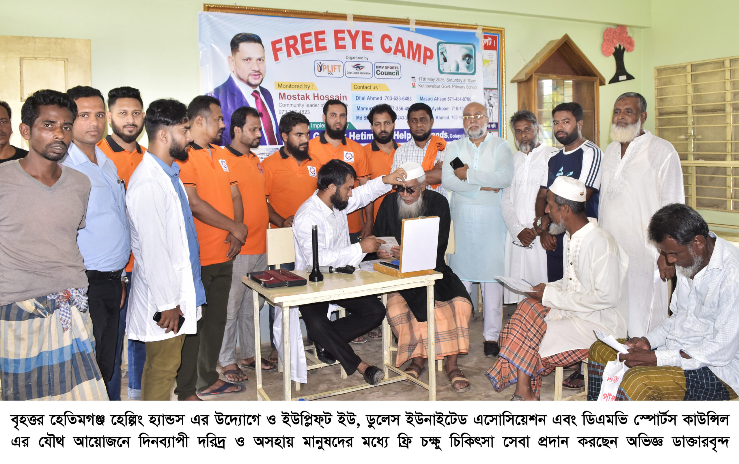 সিলেটের গোলাপগঞ্জ উপজেলার বৃহত্তর হেতিমগঞ্জ হেল্পিং হ্যান্ডস এর পরিচালনায় ও আপলিফট ইউ, ডালাস ইউনাইটেড এসোসিয়েশন এবং ডিএমভি স্পোর্টস কাউন্সিল এর যৌথ অর্থায়নে দিনব্যাপী দরিদ্র ও অসহায় মানুষদের মধ্যে ফ্রি চক্ষু শিবির অনুষ্ঠিত হয়েছে।