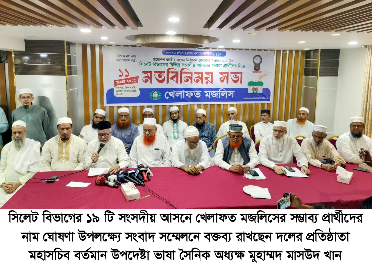 সিলেট বিভাগের ১৯ টি সংসদীয় আসনে খেলাফত মজলিসের সম্ভাব্য প্রার্থীদের নাম ঘোষণা করা হয়েছে।