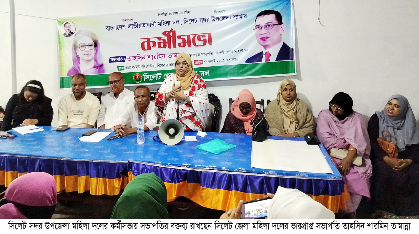 সিলেট জেলা মহিলা দলের ভারপ্রাপ্ত সভাপতি ও জেলা বিএনপির মহিলা বিষয়ক সম্পাদক তাহসিন শারমিন তামান্নার সভাপতিত্বে কর্মীসভা সঞ্চালনা করেন মহিলা দল নেত্রী জলি পুরকায়স্থ।